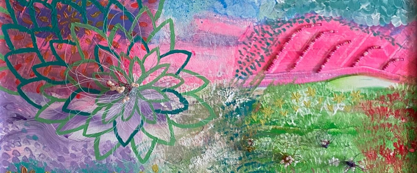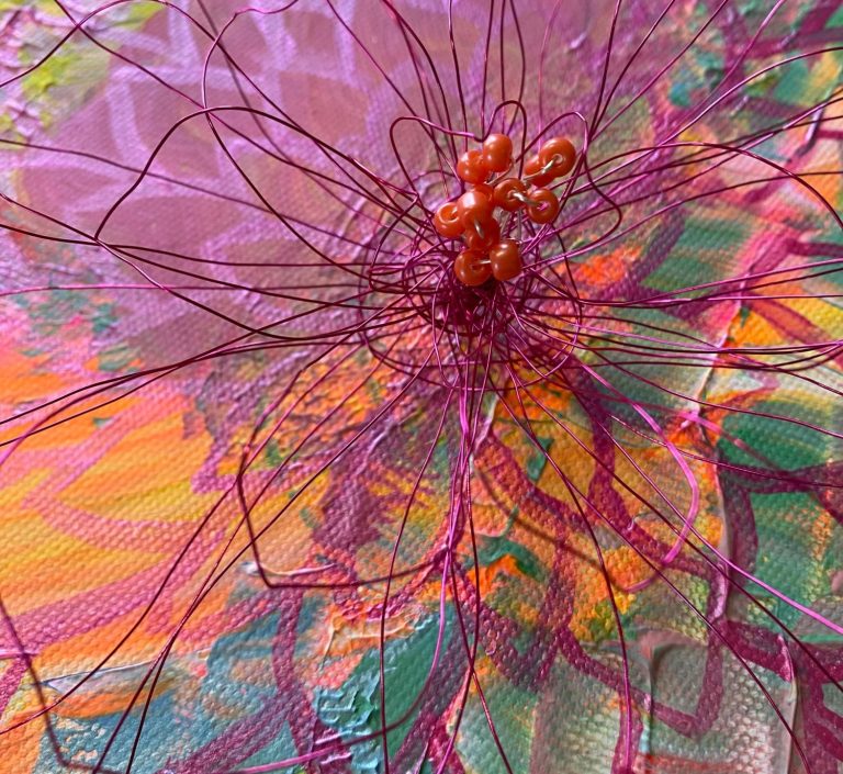 Väldigt inspirerad av blommor, skapar jag konstverk som fångar deras skönhet och livfullhet. Mitt formspråk är färgglatt och experimenterande, där jag använder glaspärlor och applikationer av metalltråd för att förstärka de blommiga motiven. Varje verk är en hyllning till naturens färgpalett och en resa av kreativitet som hoppas väcka känslor av glädje.