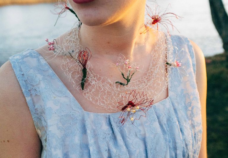 Jag har en kandidatexamen i slöjd, hantverk och formgivning från Linköpings universitet den har gett mig en bra grund till mitt konstnärliga arbete. Under min utbildning 2013-2016 introducerades jag till olika material och tekniker. Trådslöjd var en av dem. Jag började också utforska pärlbroderi. Under min utbildning fick jag möjlighet att experimentera och börja hitta mitt formspråk som konstnär.