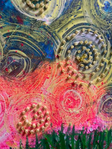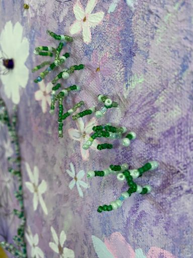 Under min utbildning har jag fått möjligheten att bege mig in i den inspirerande världen av pärlbroderi och dess alla fantastiska tekniker. Varje stygn är som en liten upptäcktsfärd i en färgsprakande värld, där kreativa möjligheter är oändliga och valet av material verkligen ger liv åt mina unika konstverk.
