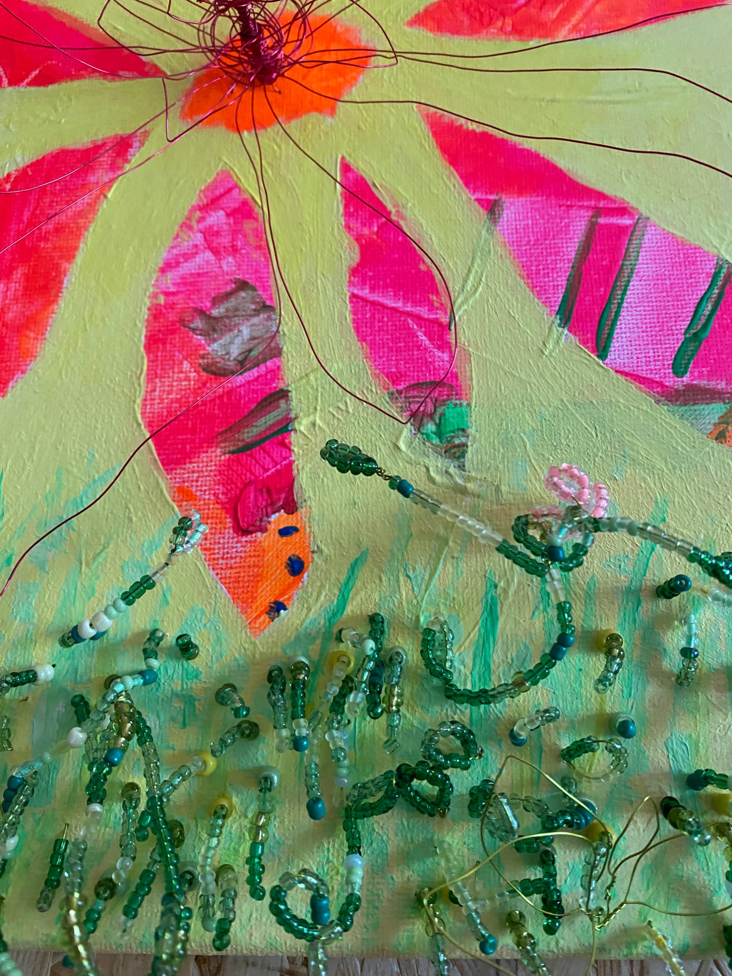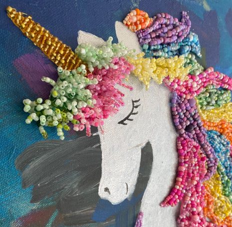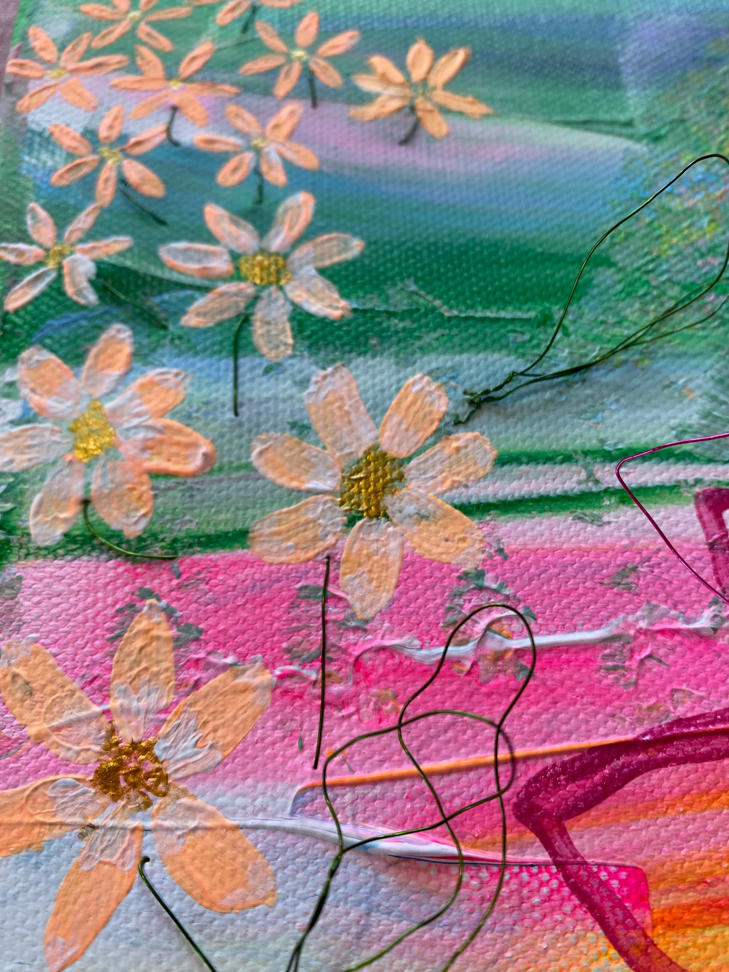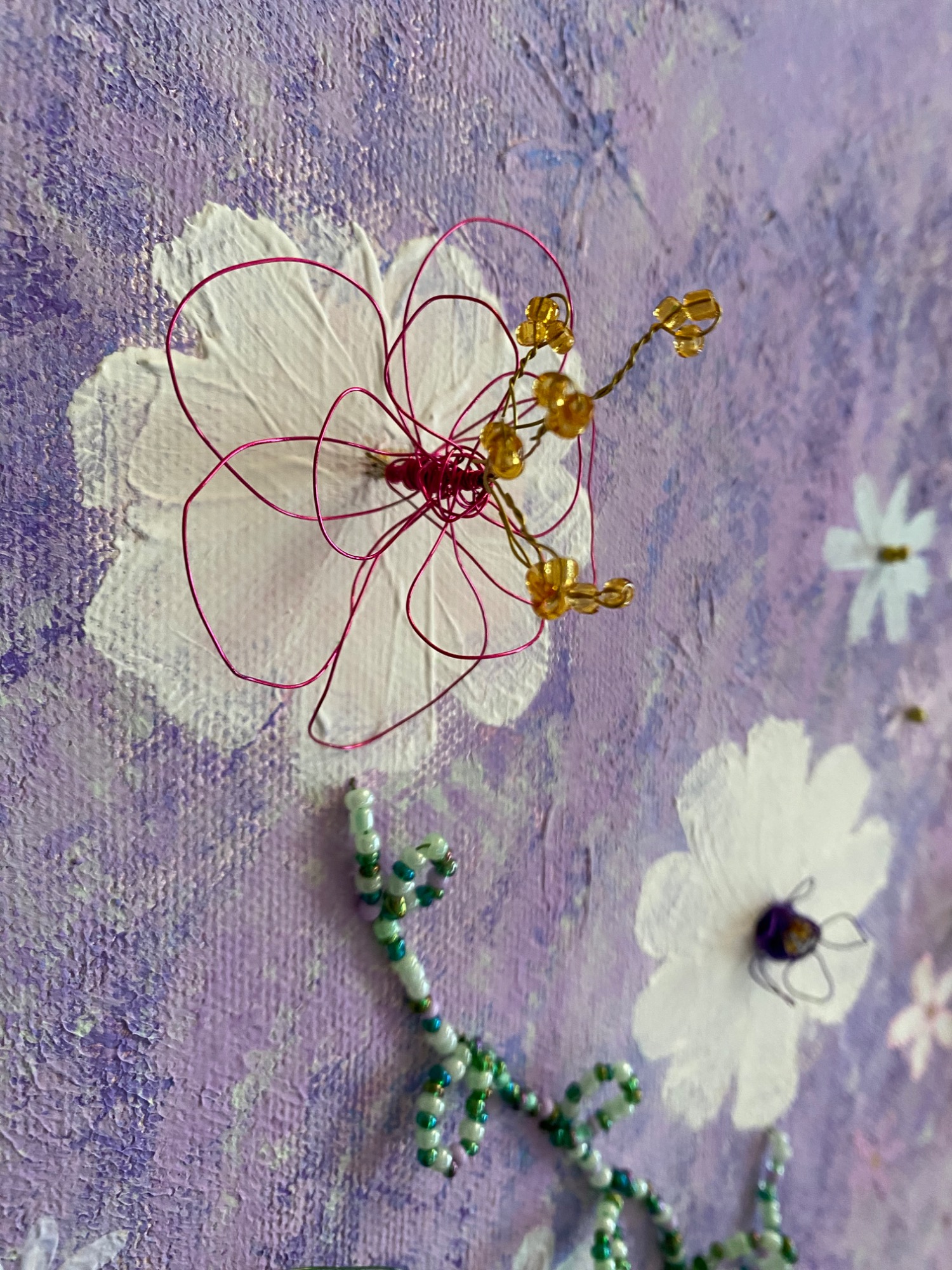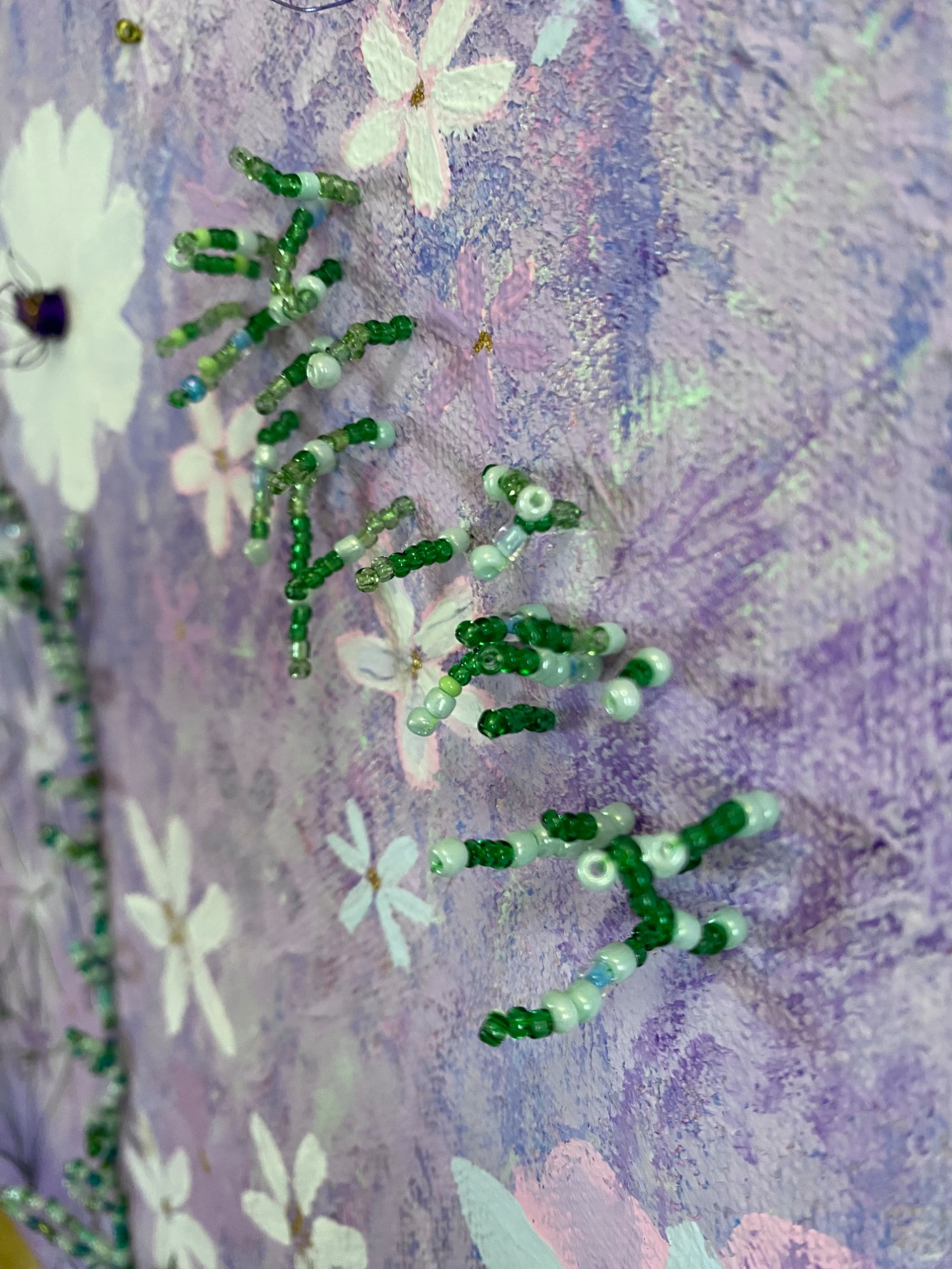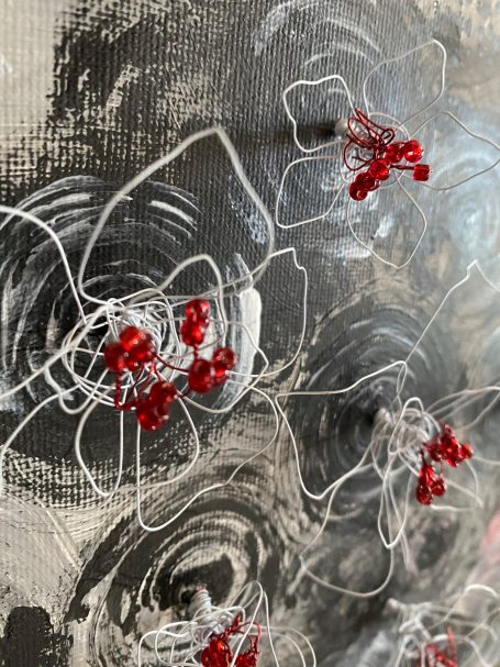 Mina tavlor är resultatet av konstnärligt skapande där varje verk är noggrant utformat med akrylfärg, pärlbroderi och applikationer av metalltråd. Denna unika sammansättning ger en fascinerande 3D-effekt som fångar betraktarens uppmärksamhet och skapar livfulla, fängslande motiv. Varje tavla blir ett unikt konstverk som bär på sin egen historia och känsla, vilket gör dem perfekta för att addera en personlig touch i varje hem.